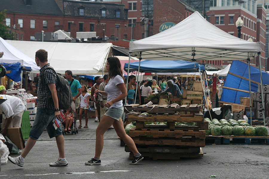so the whole family packed inside my sister's car while my father drove into boston. i was reluctant to go at first because i thought there was too many people, but the temptation of cheap produce was too great to resist. we went to haymarket first, just because it was along the way. my father circled around in the car (no place to park) while the rest of us went shopping. there was a good crowd today, with more young adults than i normally see. maybe kids are finally getting wise to the sort of deals you can score here. when we finally made it back to the call, each of us was carrying bags heavy with produce.