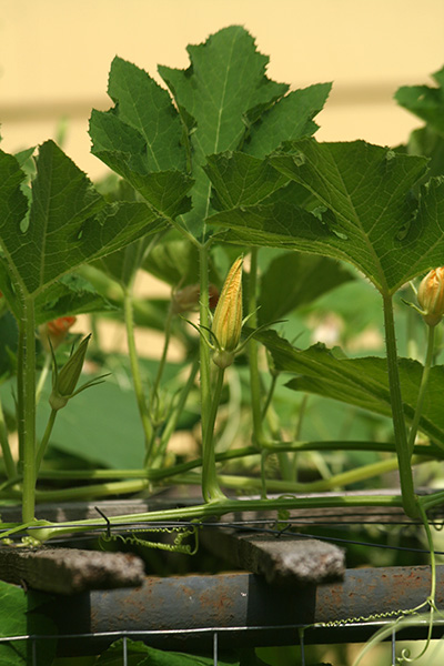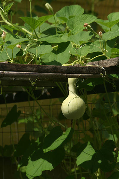 i don't know why but both the fancy gourds and the bottle gourds are producing a lot of male flowers but hardly any female ones. the bottle gourds are a little better, but so far i've only counted 2 female fancy gourd flowers: one of them successfully pollinated to became that one fancy gourd i keep on photographings, the other failed to pollinate and the immature miniature proto-gourd finally fell off the vine today.