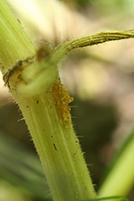 maybe i spoke too soon about the squash vine borer situation: i found a few more grubs, and further investigation revealed a more extensive infestation that i first thought. i seriously need to get my hands on a syringe and inject Bt directly into the vines if any of these fancy gourds have a shot of surviving the summer. almost to rub my nose into the situation, i spotted another adult SVB visiting the garden. i almost caught it and tapped it into a plastic cup a few times before it flew away. like i previously mentioned, i didn't have the same problem last year because the month-long overcast in june delayed squash flowering until well after the SVB's normally appear to lay eggs. next season i may have to play a second squash crop starting in june and also take measures to protect the most vulnerable lower base stems (like with tin foil wraps).
