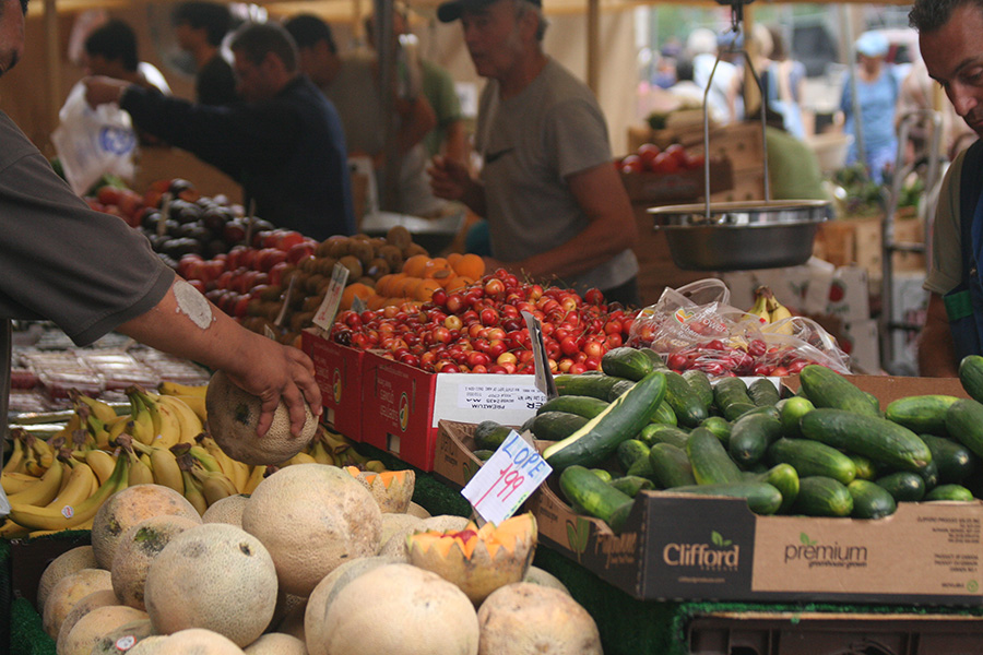 it was 4:30 by the time we finally arrived at haymarket. with the market about to close at 5:00, vendors were slashing prices and customers were clamoring for bargains. i bought a whole box of red plums for $1 (about 3 dozen) and 4 lbs. of cherries ($8).