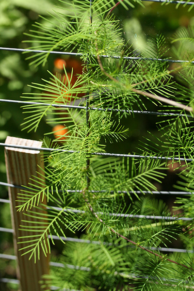 it's taking a while for the moonflowers to mature. it'll still be a few more days before the first blooms of the season. likewise with the cypress vines, only foliage so far, not even the hint of flower buds.