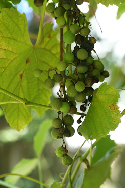 the concord grapes looked so promising a month ago, before my father decided to prune off a bunch of branches in order to divert resources into maturing the grapes. now instead of maturing, the grapes are drying out on the vine. we haven't had a good crop of grapes in many years now.