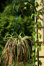 i hung the spider plant out on the shepherd's pole but it looks to be another plant that doesn't seem to do well in full direct sunlight. i'll have to relocate it again to someplace less sunny tomorrow.