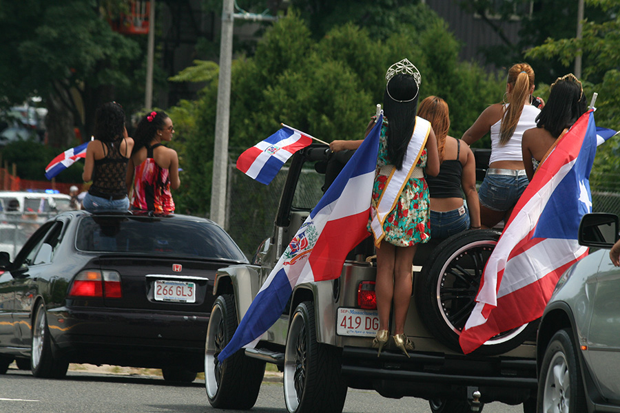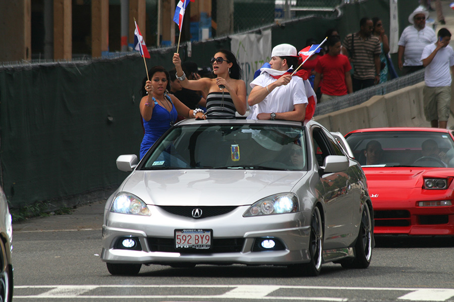with speakers pumping out danceable caribbean music. there was also the convoy of cars with flag-waving dominican girls popping out of moon roofs and windows. remember the good old days when people used to march in parades? of course it's probably no fun walking all to franklin park in heels.
