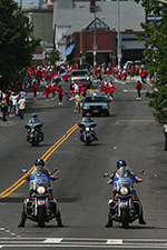 this year's parade lacked the live music and the marching bands. instead, we had minivans outfitted