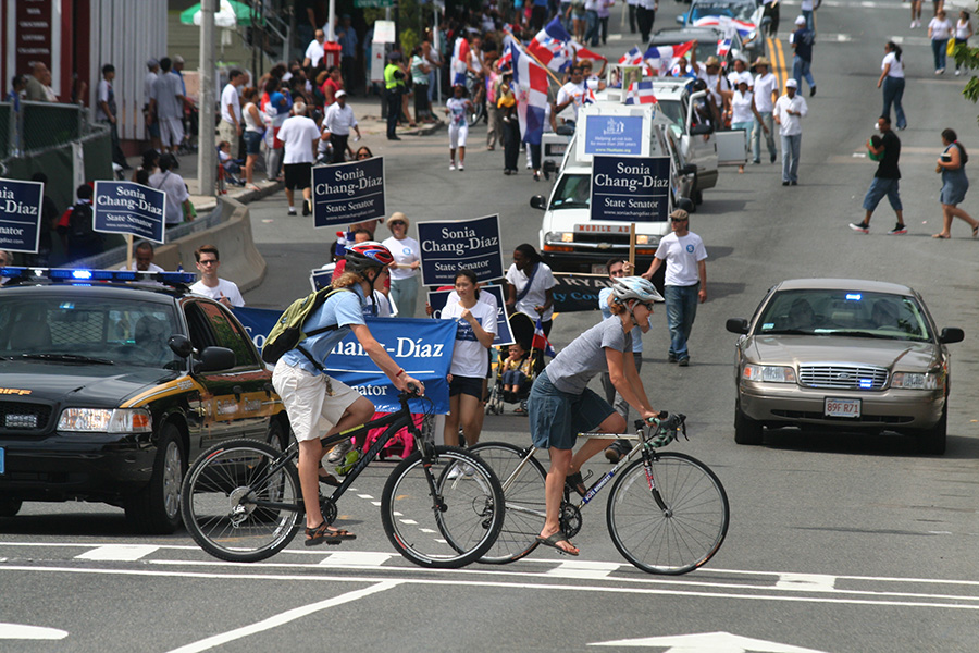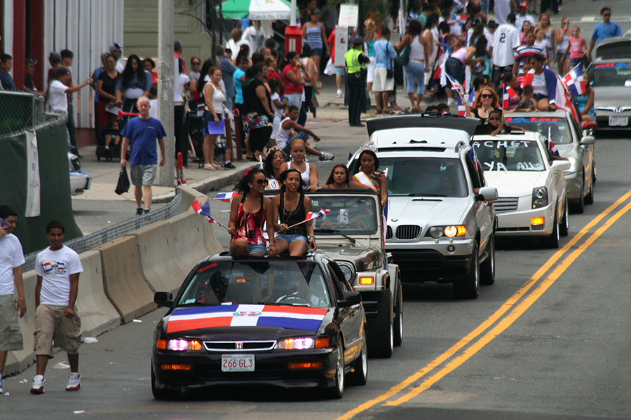 i'd been to the dominican parade one other time back in 2007. as far as parades go, it's a modest procession lasting roughly half an hour. from beacon-hampshire in cambridge in took the windsor street shortcut to get onto mass ave and across the MIT bridge into boston. continuing on mass ave, i turned onto columbus avenue and continued straight until i arrived in jamaica plain i parked on the same street as i did the first time around, sunnyside off of centre. i then walked down to jackson square T station to wait for the parade to come down the street. the weather was excellent, sunny but not too hot.
