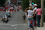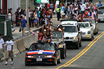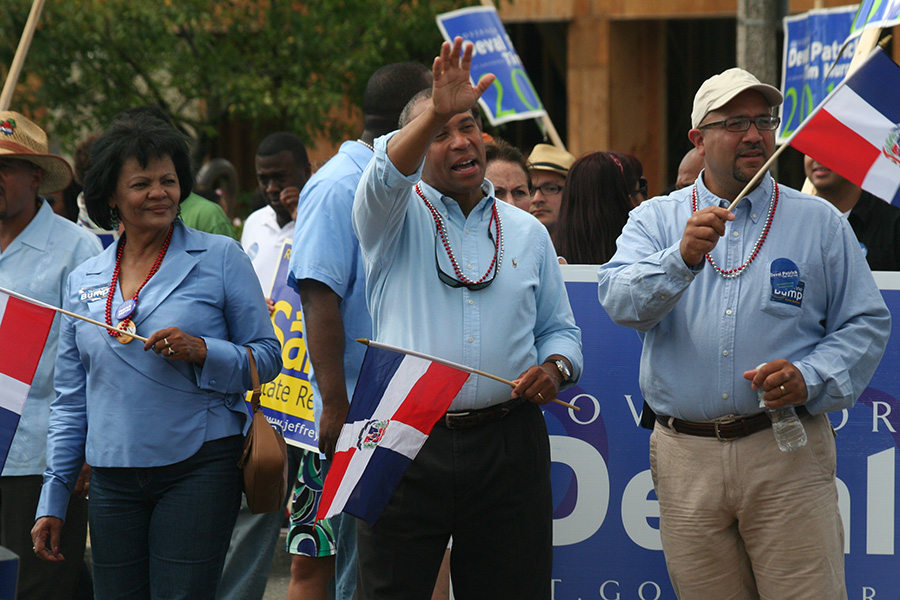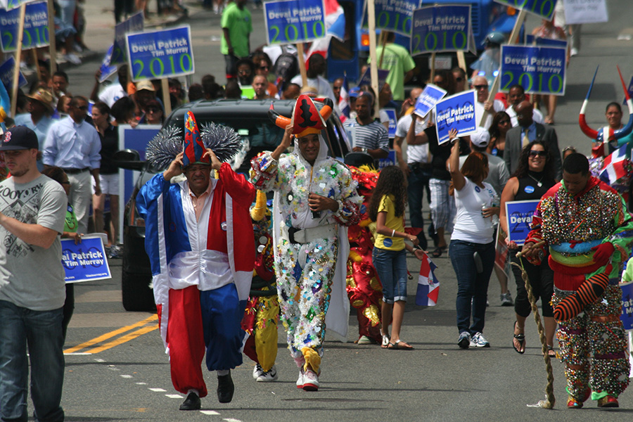 i'd heard one year dominican slugger david ortiz marched in the parade. this year's celebrity was governor deval patrick, who probably had ulterior motives besides an overriding love for dominicans (he's up for re-election). being a parade, there were a few other politicians. MA state senator sonia chang-diaz, whom i often see at these events, and even said on her facebook page, "come join us at the parade!," didn't show up but instead sent a small contingency of young volunteers.