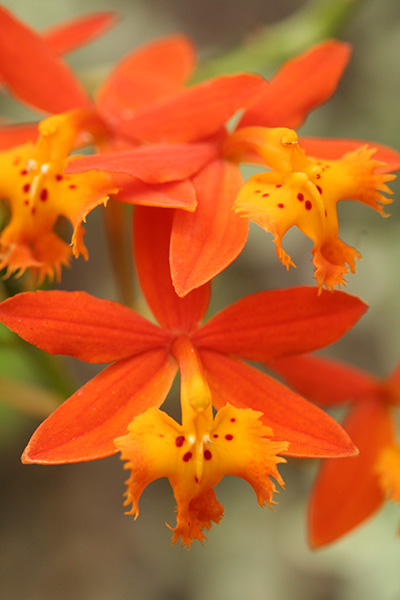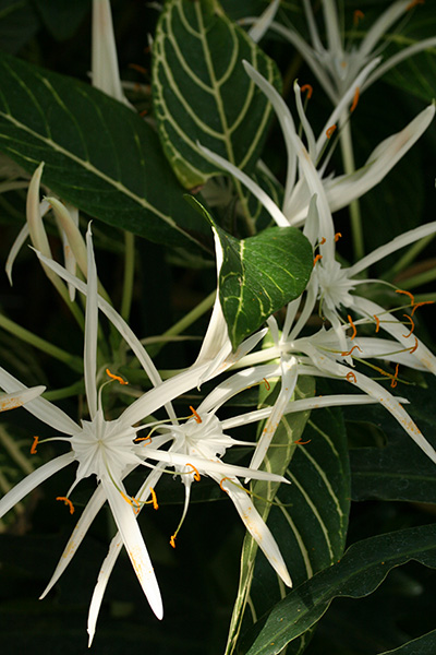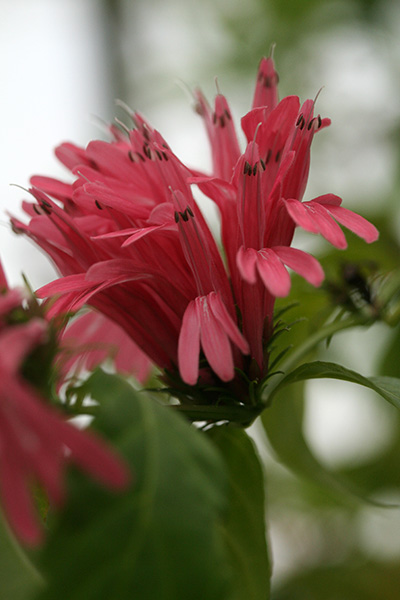 unlike outside, here in the protected climate of the greenhouse, flowers (many tropical varieties) continue to bloom: