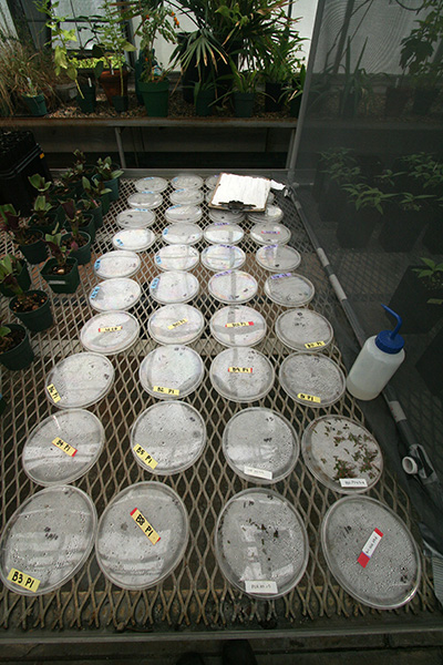 several of the greenhouses were actually research laboratories, with arrays of similar potted plants and seemingly experiments-in-progress. there were also mist sprinklers set on timers that'd blast certain areas periodically (for instance in the fern room, where i was accidently doused with water while trying to take a photo).