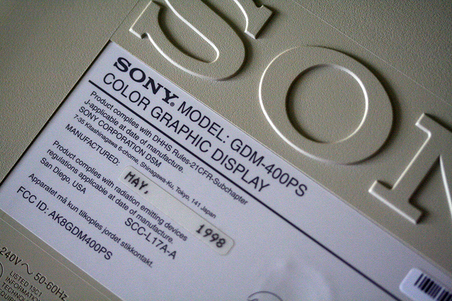 i went down to my basement today to see how many broken tv/monitors i have: a broken 19" sony trinitron monitor, a broken 14" samsung dynaflat tv (tx-p1430), a semi-broken 13" sony tv (i think it belonged to my friend alex), and a working dell 15" monitor. since i'm limited to one discarded tv/monitor per week, i decided to toss out the sony trinitron monitor. i checked it one final time, just to make sure it was really dead. the lights turn on, but there's no image, not even the menu screen. i wrote "dead tube" on the top and put it out on the curb.