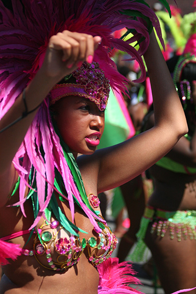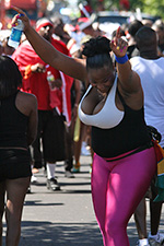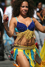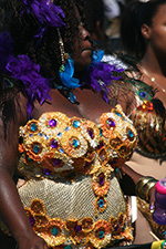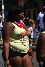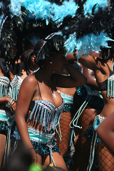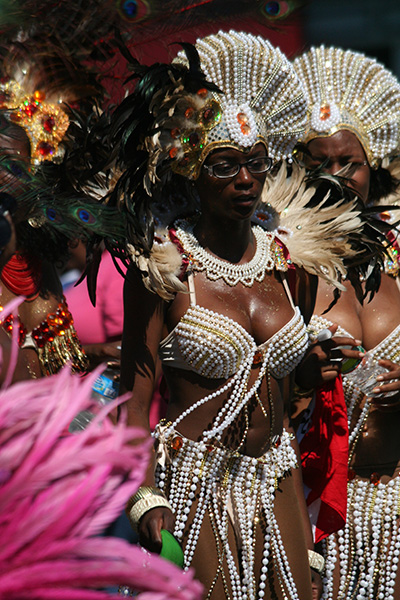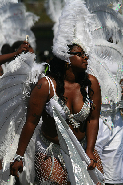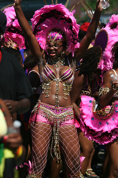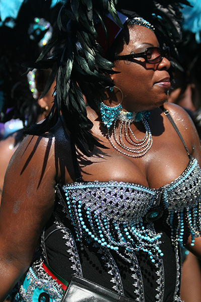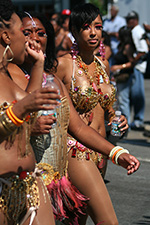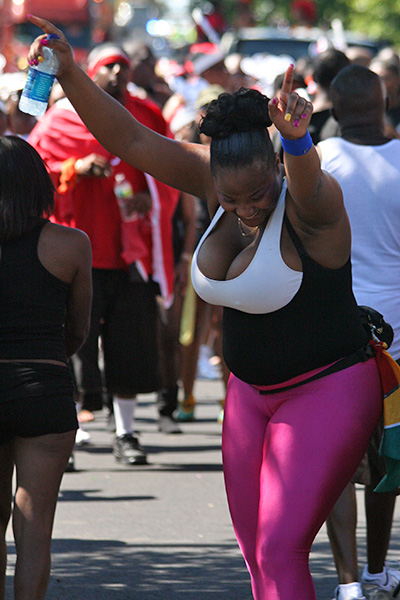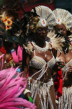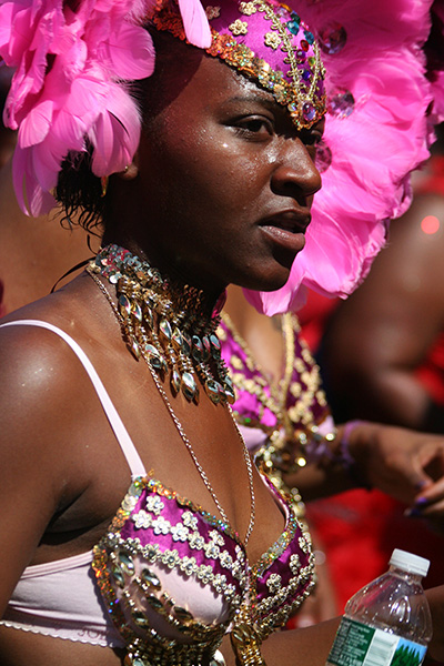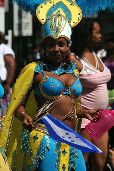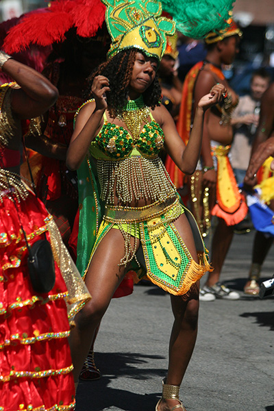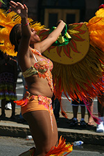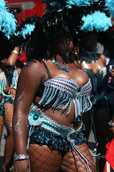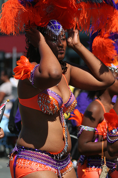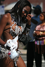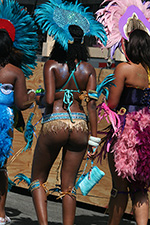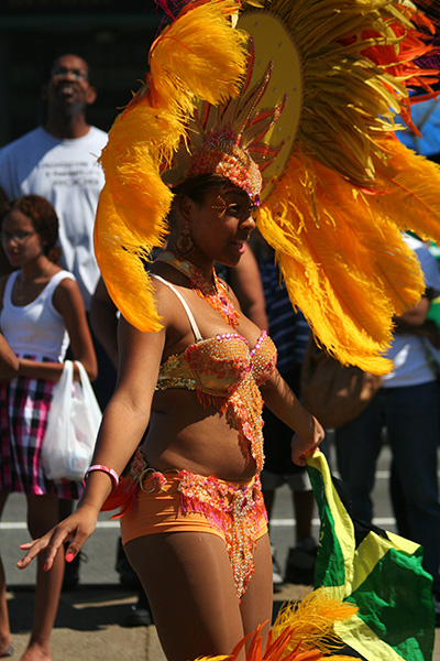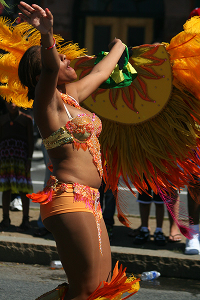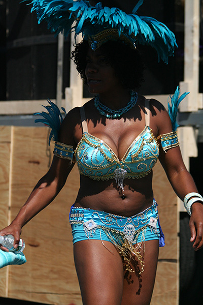 this year's parade felt like a flurry of feathers and boobs. maybe it's the weather, or maybe it's to make up for last year's lackluster performance. no live marching bands this year, but a surge in speaker trucks. there was a moving steel drum platform but nobody was playing when it passed by, to the disappointment of my roommate who'd never heard steel drums before.
