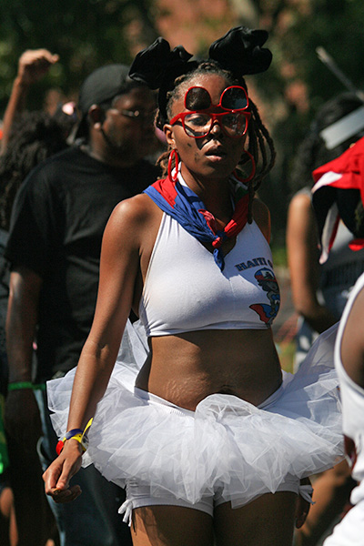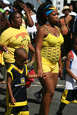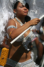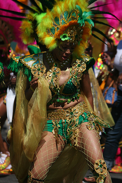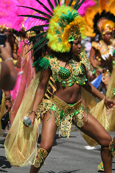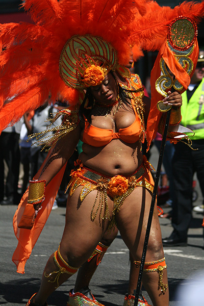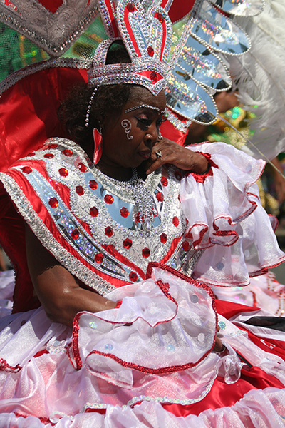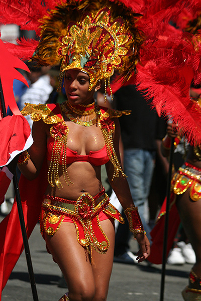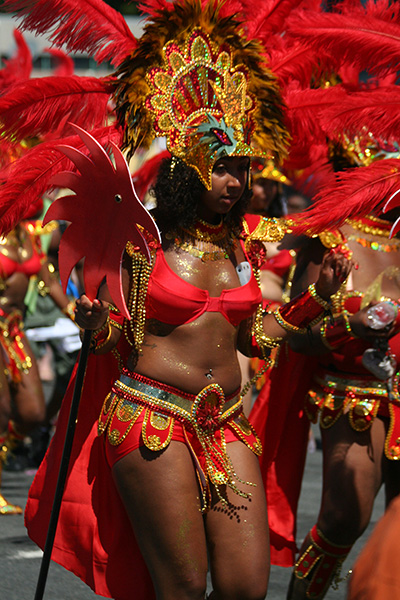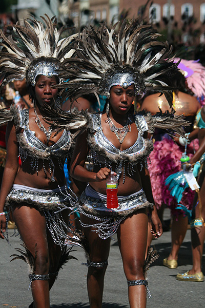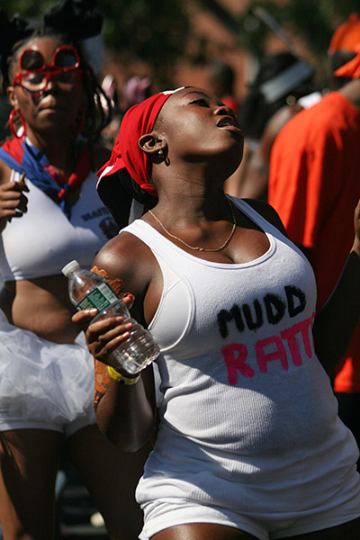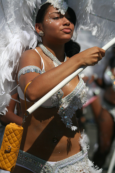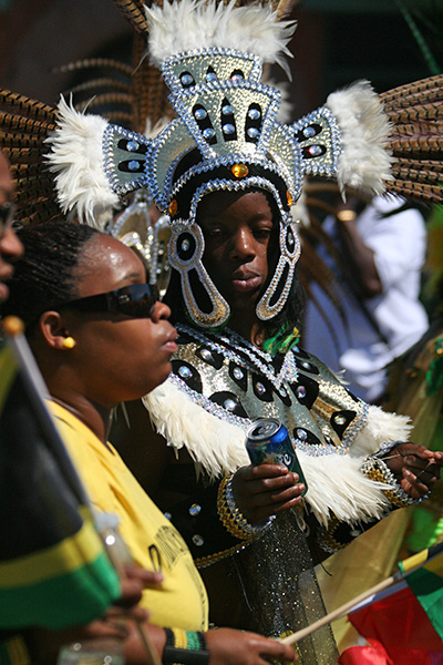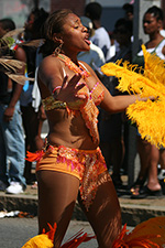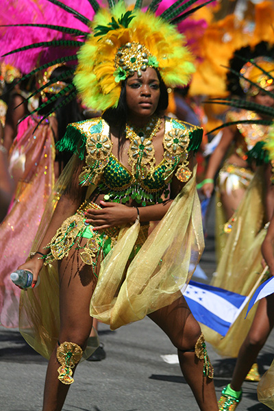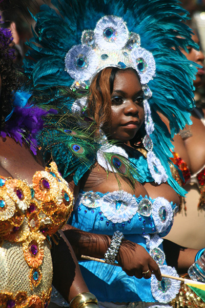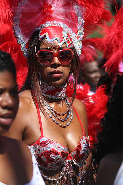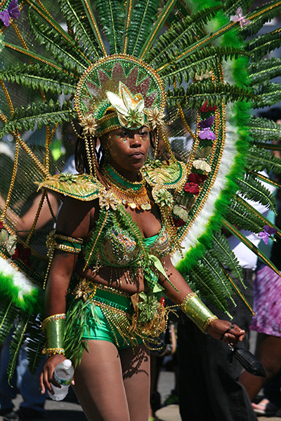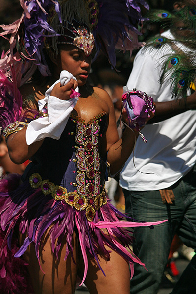 this year's parade felt like a flurry of feathers and boobs. maybe it's the weather, or maybe it's to make up for last year's lackluster performance. no live marching bands this year, but a surge in speaker trucks. there was a moving steel drum platform but nobody was playing when it passed by, to the disappointment of my roommate who'd never heard steel drums before.