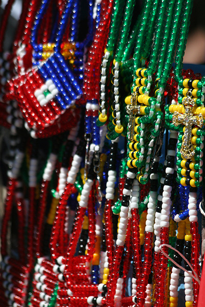 anything was better. hopefully there'd also be less drama as well (besides the parade, last year i was also going to a wedding and i ended up crashing the motorcycle). my roommate did something else i thought was strange: instead of walking around a large crowd, she had a habit of walking straight through. maybe it's a china thing, where the locals are used to mobs of people and don't even notice them. caught up in the festivities, she ended up buying a jamaica flag necklace made up of translucent colored beads (she made the decision because she likes bob marley: "what country is he from?" she asked).