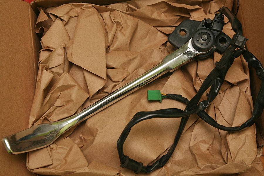 the used replacement motorcycle kickstand i ordered off of ebay tuesday afternoon arrived today, just 2 days later. talk about fast service! without installing it on the bike i can't tell if it's going to work, but there's no reason why it shouldn't. i'm shocked by how straight a normal kickstand is compared to my bent original. i'll replace it this weekend, then i can get back to riding again.