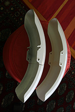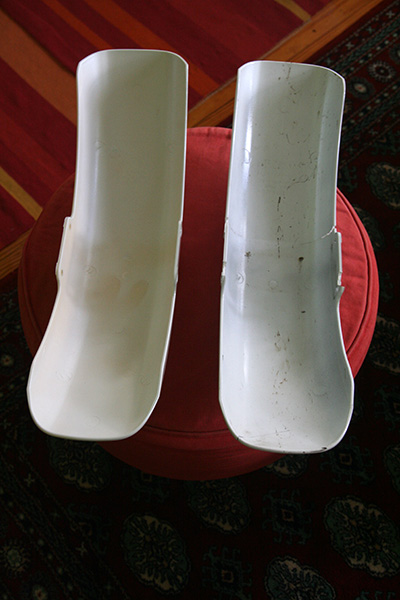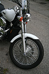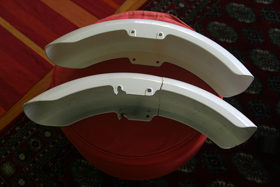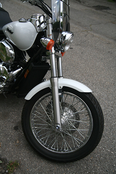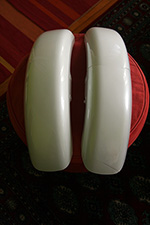 i installed the new front fender onto the motorcycle this morning. i noticed the color was slightly different compared to the old fender (probably a result of the natural way paint fades over time), but once properly mounted onto the frame, i could hardly tell the difference. i rode to the cafe to show my father the handiwork - basically screwing into 4 bolts with a hex wrench.