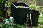 i churned the compost bin today. we don't have a fancy bin, just a converted large plastic commercial trash bin with a hinged lid. it's starting to smell a little (of decomposing grass clippings) which means we need more dry ingredients. i thought the addition of some early season dead leaves would balance things out but apparently that's not enough. every once in a while i'll find a newspaper and send a few pages through the shredder and add it to the pile. the compost is really cooking this season, as it was actually steamy while i turned it with a spade.