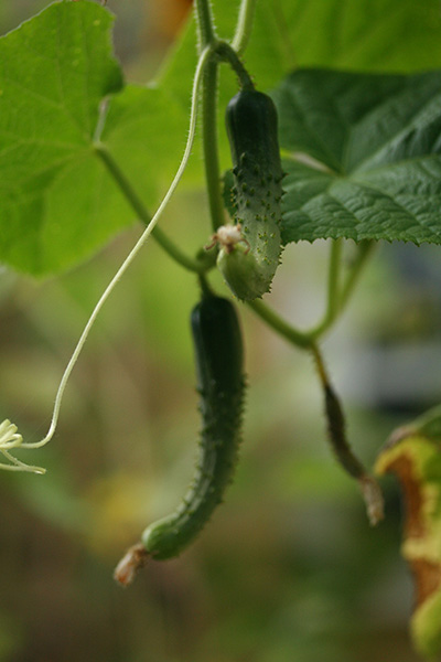 like the gourd/squashes, the cucumbers have also shown a resurgence of new growth. given the forecast though, i'm not sure if any of the immature cucumbers can develop into adults.