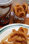 i asked if i could make an exchange. the guy working there tossed the fries into the trash and handed me an order of onion rings. i couldn't believe the waste of some perfectly good fries! maybe there are safety reasons, like i could've contaminated the fries - but to toss out perfectly good fries seem so wrong to me. had i known, i wouldn't have said anything, and just ate the fries instead.