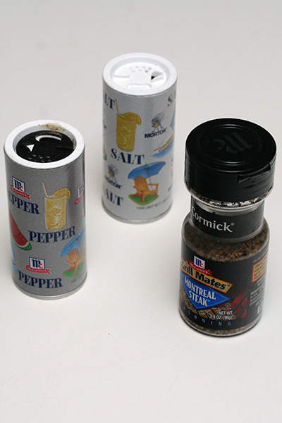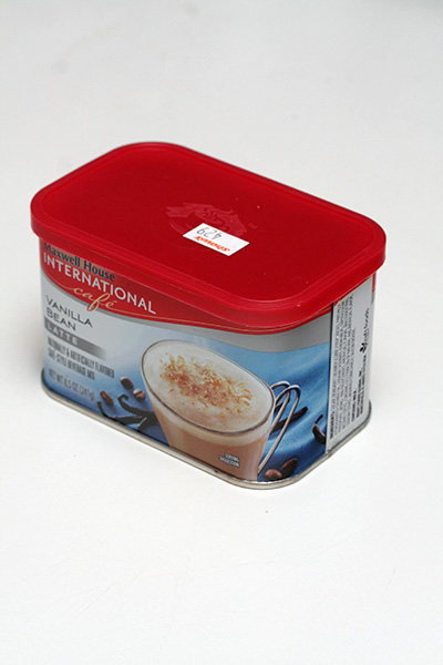 i'm surprised she left behind her little tin of instant maxwell house vanilla bean latte. that wouldn't have taken up too much space in her suitcase. maybe she didn't like it that much. salt and pepper i can understand leaving behind, but the montreal steak spices she couldn't taken. maybe she just forgot about it. she couldn't take the eggs or the apples though. eggs i can use, but i'm not a fan of green granny smith apples (too tart).