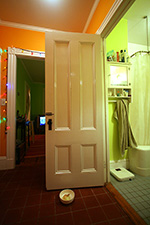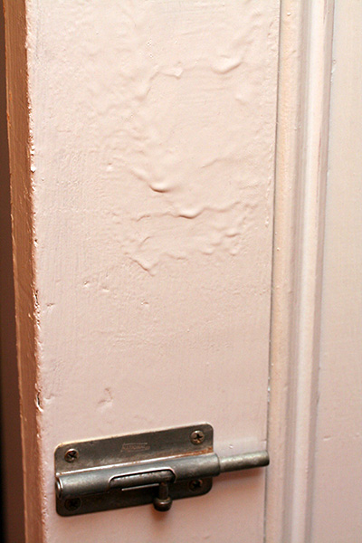 later in the evening i put back the hardware on the bathroom door. i left off the towel rack for now. i'm waiting until the paint is 100% dry before re-installing it. even then, not sure if the back of the door is the best place for towels, since they're going to absorb that oil paint smell. i just love the feel of oil paint though. it feels much more solid than latex paint.
