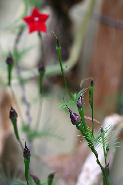 it wouldn't be hard to cover the entire southern side of the house with morning glories. i collected a few more seeds, along with some cypress vines as well.
