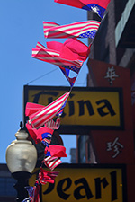 from there we went across the mass turnpike into chinatown proper. we parked the bikes and walked around a bit. pau was thinking about lunch (it was 1:00 by then) but i told him we didn't have time, since we wanted to leave boston by 2:00. there was bunch of taiwanese flags adorning the area. i suddenly remembered it was chinese independence day. but the actual date of chinese independence and which flag is flown is hotly contested. for the republic of china (taiwan) that date is 10/10, the start of a 1911 uprising that led to the overthrow of the last emperor. for the people's republic of china (mainland china) that date is 10/1, the day chiang kai-shek's nationalist army were driven out to taiwan and mao zedong proclaimed a new people's republic. the fact that chinatown was covered with nationalist china (taiwan) flags is sort of a dig against communist china.