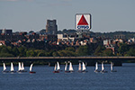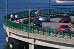 we headed into boston under a clear blue sky. it was a little bit chilly this morning, but warm in the sun, and downright hot after several minutes of pedaling. we reached the longfellow bridge in about 20 minutes. we leaned our bikes against the metal barricade next to the narrow bike lane and hopped over the railing to check out the view of boston. pau didn't need any prompting to take out his camera and begin shooting. in the water were sailboats, practicing crewmen (head of the charles in just a few weeks), and the ubiquitous duck tour boats. along the walkway joggers ran past us.