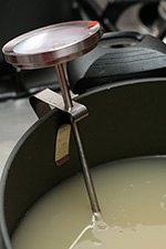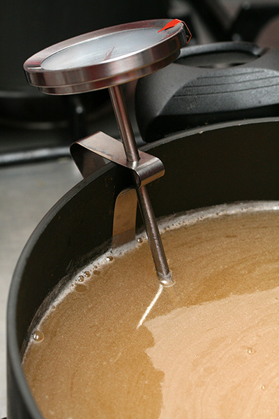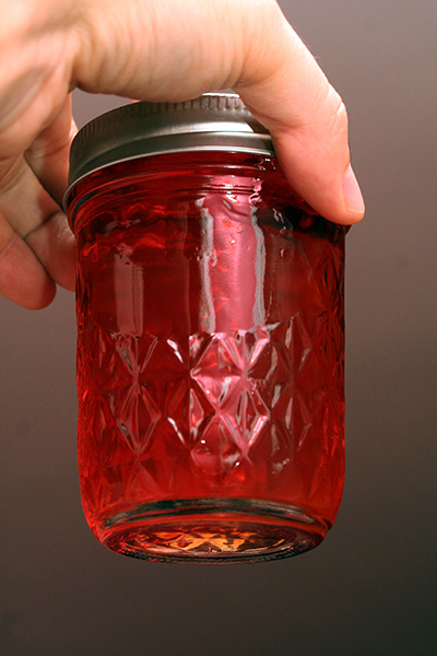 once the temperature reached 105°C, i turned off the stove. i wasn't entirely happy with the cold plate test: the droplets were solidifying, but i wasn't quite sure if it was as solid as jelly 1.0, which i was trying to recreate. i decided over the weekend (through some taste testing) that a softer more liquid jelly is better than the harder drier jelly. softer jelly sort of melts in your mouth while harder jelly just hangs around. harder jelly is more like the jelly you buy in stores, but softer jelly is what makes homemade jelly more special.