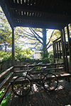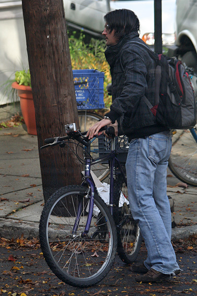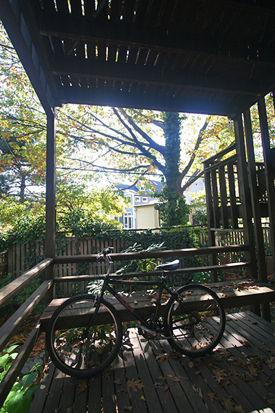 i went down to the basement to install the newly-fixed rear wheel back onto the trek bicycle. with a bucket of warm water and a sponge i washed the bike in the backyard. i decided to take it out and give it a test ride; up to this point i've only ever ridden it for a few yards in the confines of the cafe basement.
