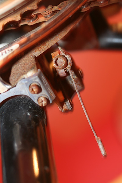 this would also give me a chance to see what else is broken and needs fixing. a made a short trip to the dollar store, looking for some steel wool (they didn't have any). the bike is taller than what i'm used to, and the 26" wheels feel like i'm going a bit farther was less pedaling. sitting on the seat, i can still touch the ground with my tiptoes if i lean it a little bit. i didn't like the mountain bike style front wheel; it seemed more to grip than actually rolling. i could change it so it matches the comfort style treads on the rear tire, but for now i'll hold off, don't want to spend anymore money on this bike than necessary. both brakes worked fine with responsive stopping power. however, none of the gear shifts worked. the knob for the front gear seemed stuck, and although the rear shifter managed to hit all 7 points, nothing was happening to the derailleur. at the very least the shifter cables needed to be replaced.