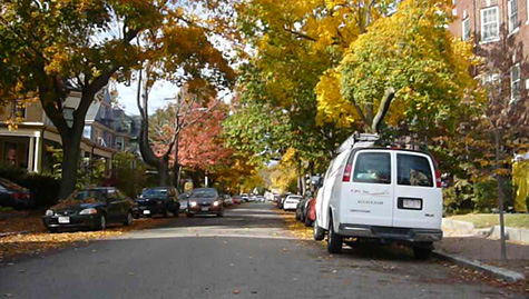 like yesterday, pau went to work an hour later than usual, around 11:00. he borrow my "action mount" so he could attach his point-and-shoot camera onto the handlebar of his bicycle and make a movie of his ride to the office on a colorful new england autumn day.1