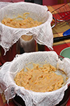 i began the next step of the quince jelly making process: collecting the dripped juices. to my surprise, even though i used less quince, i ended up with 10 cups of liquid, the most i've ever had. what gives? i don't think it's because i added more water: just the usual, an inch above the chopped quince layer.