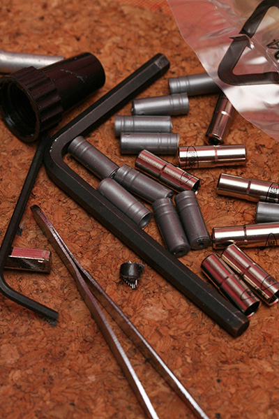 the gear cables i got were part of a kit ($14.99) made by clark's, an english company. they're supposedly pre-lubed and maintenance free, and the guys at the bike store said it'd be the last shifter cables i'd ever buy. it included a lot more parts than i actually used, including 10 plastic ferrules that didn't seem to fit on anything and a piece of thin polyethylene tubing. it didn't come with instructions and i couldn't find any additional info online. i did use the rubber o-rings though, putting them onto the exposed cables (supposedly to protect the bike finish, even though it's a junk bike).