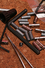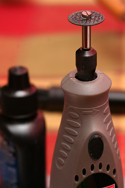 this involved working with a dremel tool, my very first time. i had to use it to cut the housing cable. i only discovered this a few weeks ago, but bicycle cable housing are actually a composite of metal, plastic, and rubber materials - making them a little difficult to cut, or at least cut cleanly. of course they make special cutters for such purposes, but i didn't think it was worth investing in a special cutting tool if i wasn't going to use it all that much. i read online of people using a dremel tool instead, so i borrowed my father's this past weekend.