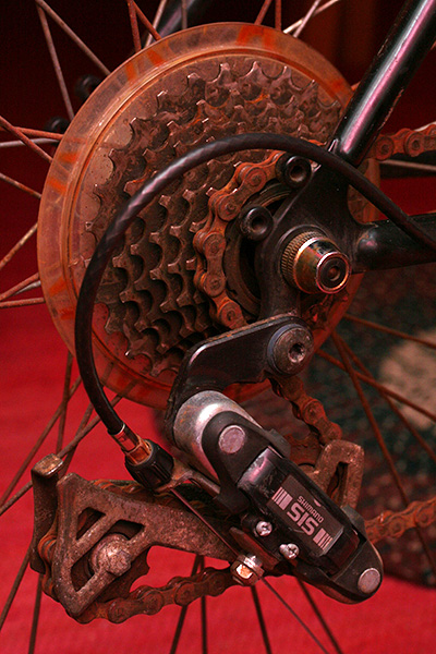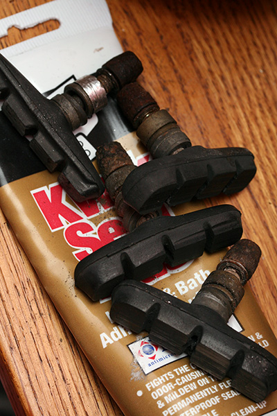 i thought about ordering a set of new brake pads, but now i think i'm just going to reuse the old ones, despite their rusted appearance. i really don't want to spend anymore money on this bike, given that there's another one in the basement (in much better condition, more rideable, with front suspensions).