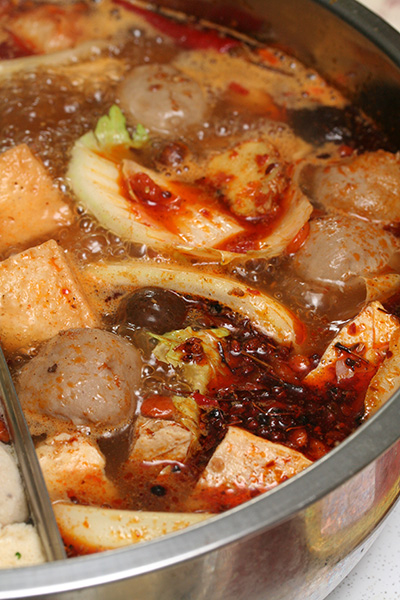 for dinner we had hot pot. the spicy base had a strong cumin and chinese medicine taste, a rather unsavory combination. i'll just have to remember not to go with that brand in the future. the ingredients came from the korean super market, so a few favorites were missing (like tripe).