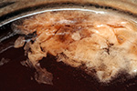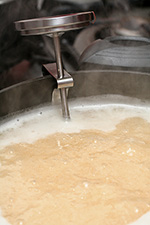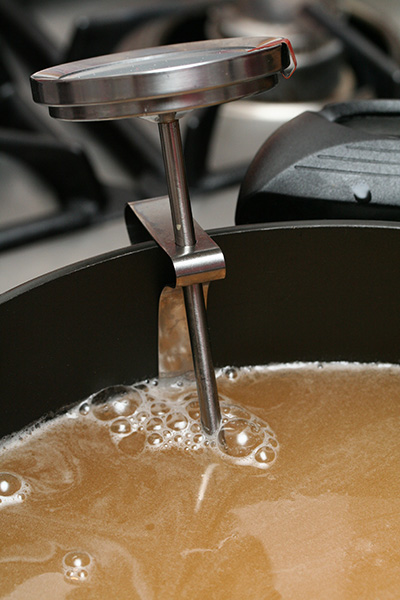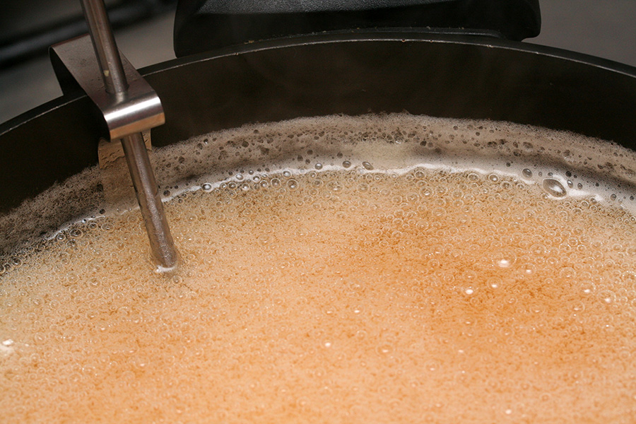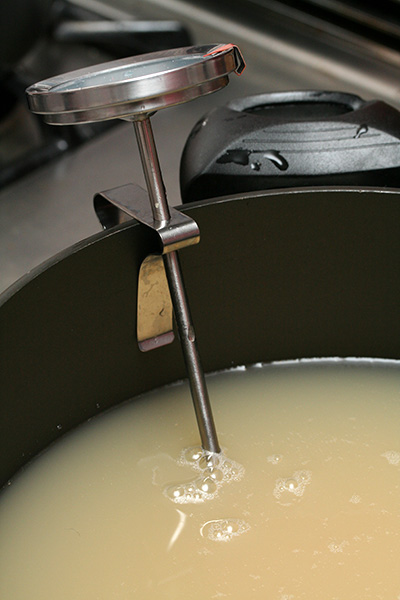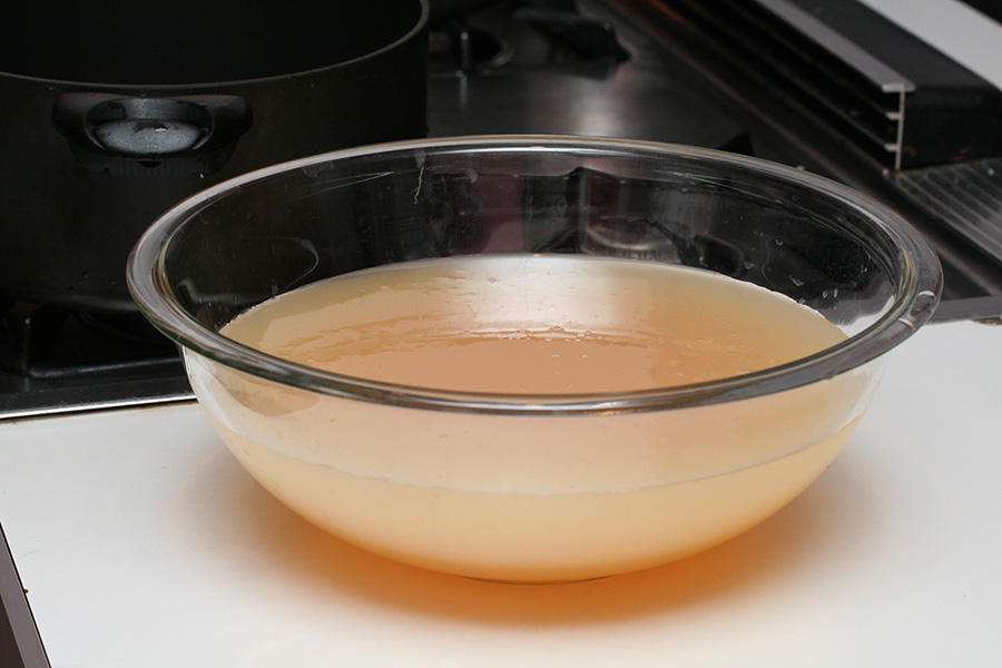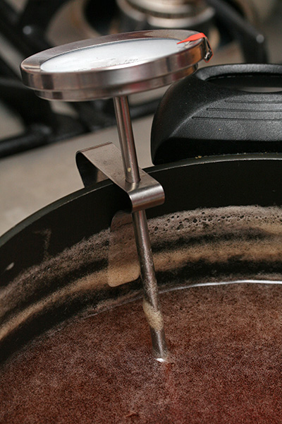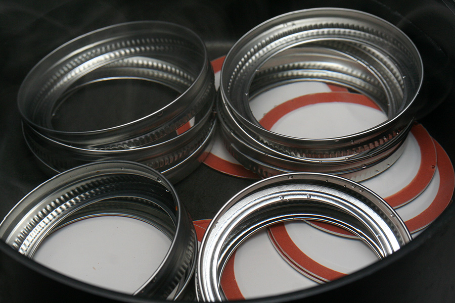 i boiled the liquid at medium-high heat, occasionally dialing it to high heat just to evaporate the water a little faster. the whole time i was stirring constantly, to prevent the foam from solidifying on the surface and to keep it from overflowing. i also sanitized the lids by soaking them in boiling water.