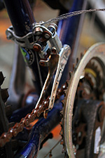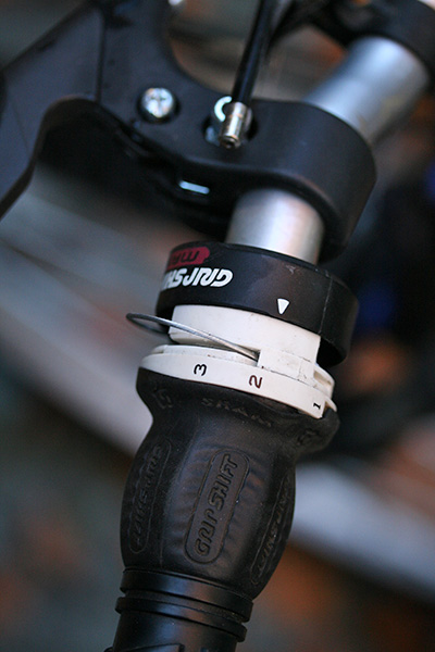 the front shifter cable of the magna needed replacing. it was frayed at one end and stretched so tightly from the previous repair attempt that the shifter didn't work anymore. it wasn't hard because i only had to replace the cable since the housing was still in good condition. the toughest part was just trying to release the nut clamped to the frayed cable. after hitting it with a few drops of triflow lube, i did manage to loosen the bolt. next i had to make some fine adjustments to the derailleur screws because it wasn't able to engage the largest cog. the front shifter is a little weird though; it stops in several locations when it should only stop at 3. not sure what the reason is but i'm not too worried about it, everything works now (more or less).