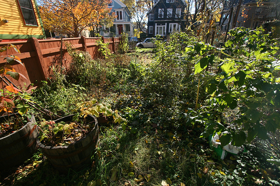 after a quick bagel for lunch, i left for the community garden to clean up my plot for the season. i pulled up all the dead plants, restapled the chicken wire trellis, collected all the tomato cages, pruned the raspberry canes, and dug up my rosemary. even though i wore gloves, i still managed to get some scratches on my upper arms (most likely from the raspberry thorns). looking back at the cleared plot, the garden looked brand new, and i actually felt inspired for next season. the good thing is i have all winter to strategize. i may still have time to plant some garlic bulbs, although nothing special, probably whatever i can find at the supermarket. not sure if any garden places are still selling garlic bulbs this late in the season. i may also want to build some frames for next year, get some raised bed action. if nothing else, it should make my garden look less messy, and hopefully keep the garden association from complaining too much like they did this year.