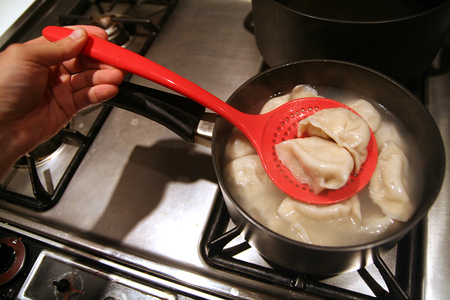 for dinner i heated up some frozen chinese dumplings my mother gave me before i left the cafe. i boiled the water first in the electric kettle to give myself a head start.