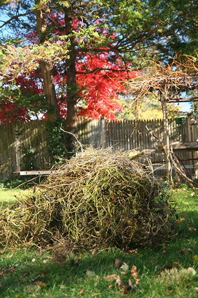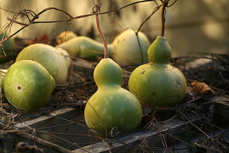i pulled up everything i could, including all the dead pepper and tomato plants, as well as the various vines. with the help of a ladder, i collected all the bottle gourds and put them temporarily on a rack to dry.