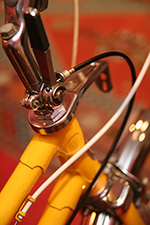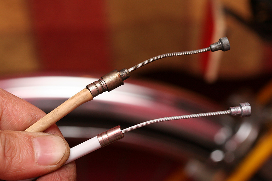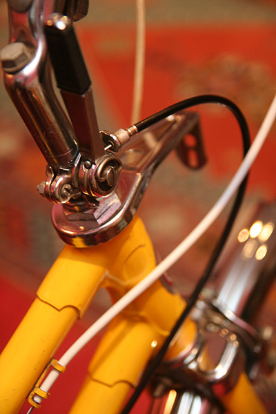 i cleaned the bike but i still needed to do some cable repairs. the bike used white cable housing which i needed to buy (i only have black ones). i went to the bike shop on somerville avenue figuring they wouldn't have it so was surprised when they did ($5). it was actually brake cables (including the inner and outer portions) but since the shifting isn't indexed, i didn't need the fancier compressionless housing and could use the brake housing for both brakes and gearing.