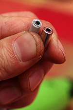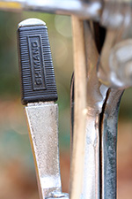 once i got the rear cable properly secured, i began cutting the housing for the gear cable, which requires 3 segments: shifter lever to the bike frame, bottom of the bike frame, and derailleur loop. the black cable was actually from the $5 bell bicycle cable kit i bought a few weeks ago. right away i could tell it was of an inferior quality, because the housing was just metal inside, no inner plastic layer for smoother cable transmission.