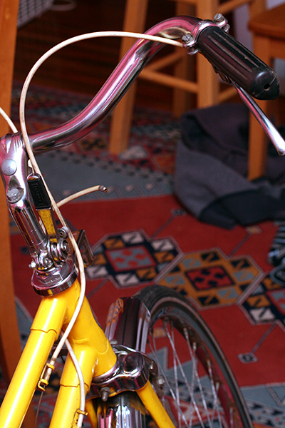 my father dropped off the ross bike this morning. in exchange i gave him my rosemary plant to take back to belmont for winter storage in the sun room. i wheeled the bicycle inside the house to work on it.
