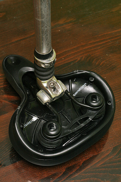 afterwards i went down to the basement and brought up 2 bike seats, one from the trek, the other from the magna. i replaced the crappy seat on the trek with the cruiser seat i bought yesterday. the trek seat post is actually a suspension post, but that thing has long rusted shut so the suspension is no longer working. i was ordering some stuff from amazon.com and decided to buy a replacement seat post for $8. the one i got doesn't have any fancy suspension but it will allow me to lower the seat height by a few more inches.