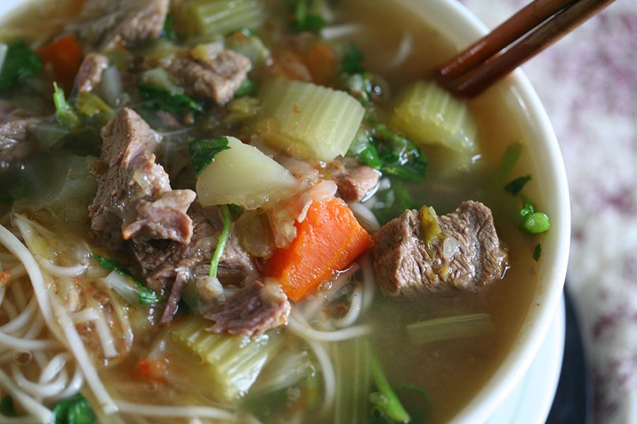 i got some gas for the motorcycle before heading to belmont. my mother had some hot noodle soup waiting for me when i arrived.