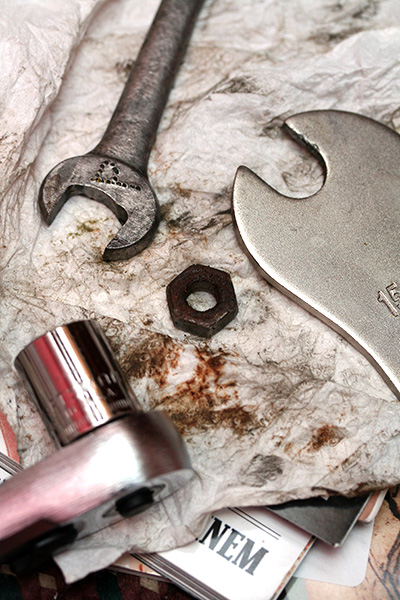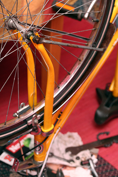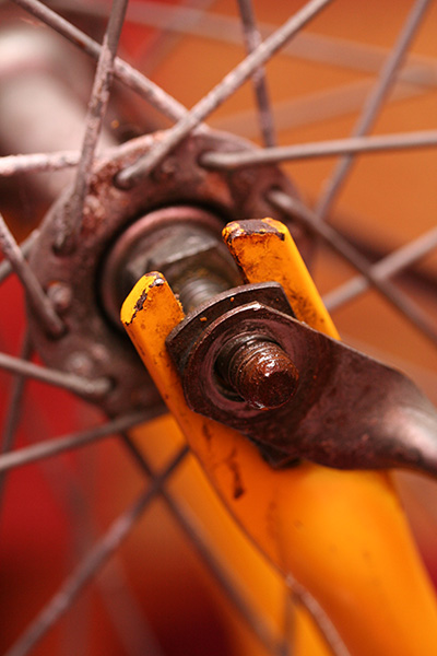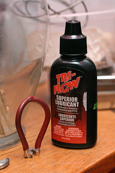 while waiting for my water to boil so i could make some tea, i tried to remove the axle nut from the front bike wheel one more time. basically throughout this whole past weekend i've been engaging in a test of strength whenever i had some free time. every once in a while i'd dribble some triflow lubricant into the assembly in the hopes of freeing it from the rusty grip. not sure what it was tonight, maybe a combination of triflow working its lube magic or maybe an inspirational fit of unusual hand strength, but i managed to move the nut on the axle by a fraction. that gave me the confidence that it could be done, and after a few seconds more of straining and swearing and figuring out the right direction to turn, i slowly managed to work the nut off the axle. that was enough excitement for one evening. i'll remove the wheel properly tomorrow morning, as well as the fender so i could try fitting it on my trek bike.