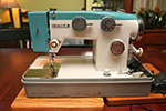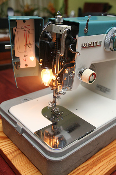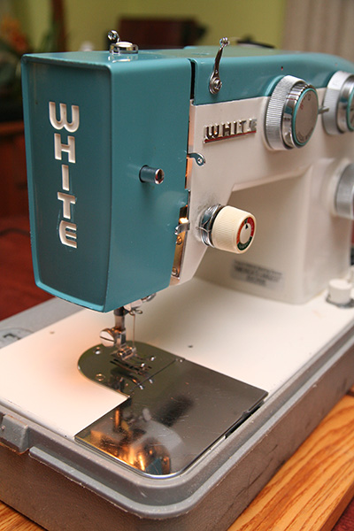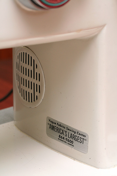 it was a 1972 white sewing machine. why it was so heavy i'm not sure, but it weighed anywhere between 40-60 lbs. because it came with a case it was in pretty good condition, and even included the manual. other than a few knobs, this machine was almost entirely metal, which probably explains the weight. there's a sticker for "vogue fabrics sewing center" of illinois, probably where this unit was originally purchased (i did some research, they still exist, even the phone is the same!).