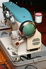 inspired by some comments hillary made, i went down into the basement in search of my mother's old sewing machine. i couldn't find it, but instead i found this large and heavy box that i thought at first was a movie projector. turns out it was an old sewing machine given to my sister from a friend of hers. i lugged the thing upstairs.