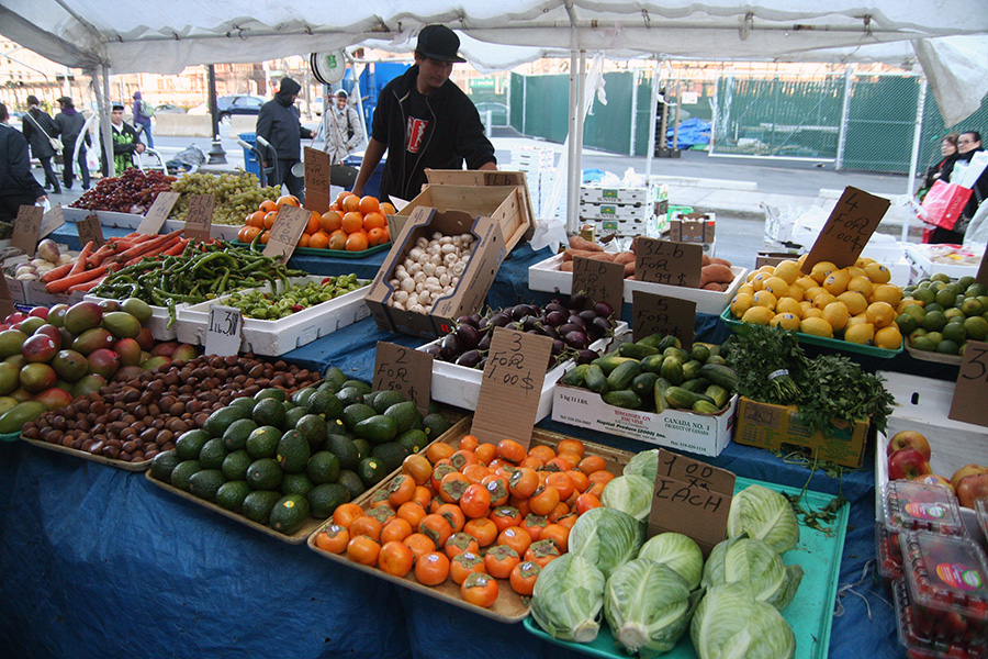 evidenced by the empty stall spaces. close to wintertime there's less selection but still bargains to be had. my purchases: 4 cucumbers ($1), about 3 lbs. of beets ($1.50), 2 bundles of scallions ($1), 2 bunches of cilantro ($1.50), 2 pomegranates ($2), 9 persimmons ($3), a package of garlic (5 cloves, $1), a bag of red seedless grapes ($1), 4 lemons ($1), and a large bag of long green hot peppers ($1). all that for less than $20!